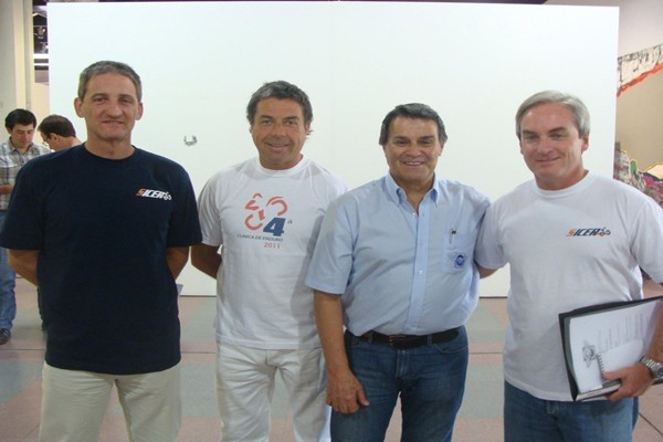 Claudio Vigilanti y Marcelo Carranza (Sicer), Luis Otero (FIM) y Carlos Ferro (FCM/Sicer).