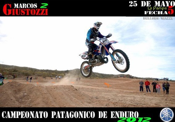 El campeonato patagónico de enduro APE visitó por primera vez la localidad de 25 de Mayo, La Pampa, para la disputa de la 5ª fecha del calendario 2012 que entrego una carrera espectacular con un final abierto que terminó definido a favor de Marcos Giustozzi en la Seniors, tras un nuevo duelo con el cuchillo entre los dientes con su hermano Nicolás, que termino como escolta a solo 5 segundos de la punta.