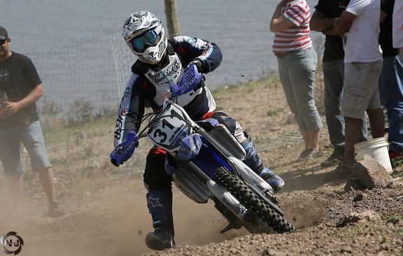 Pasadas las 14 horas largó el “plato fuerte” del enduro cordobés con los Seniors en pista, con la promesa de un nuevo duelo entre Giordanengo y Sánchez quienes pelean mano a mano el “1” del enduro cordobés tras superar el promedio de la temporada. De movida nomás, César salió a mostrar sus cartas clavando el récord de la pista en el primer giro, un trazado muy veloz e intenso que no permitía errores o al menos se pagaban caro. Tras 2 giros, César continuaba estirando diferencias mínimas pero valiosas, hasta que promediando la tercera de seis vueltas pactadas, la 300 EXC se plantó, dejando el terreno prácticamente libre para que el “Sandro cordobés”, manejara los tiempos y las energías a placer, incluso, regulando el ritmo de mitad de carrera hasta el final.
