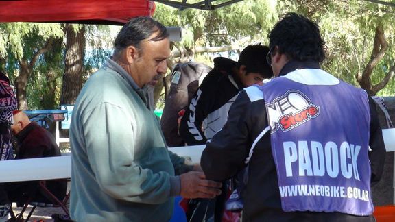 Luisito Astray de Crossworld esta vez de “civil” con la indumentaria de la nueva Federación Mendocina de Motociclismo.