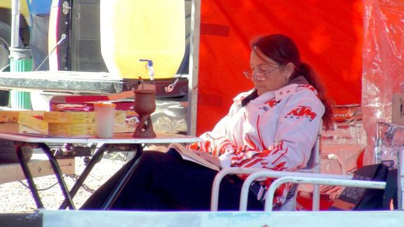 No todo es nafta y aceite en el KM Sport, la lectura y el mate un estandarte de la señora Manzotti.
