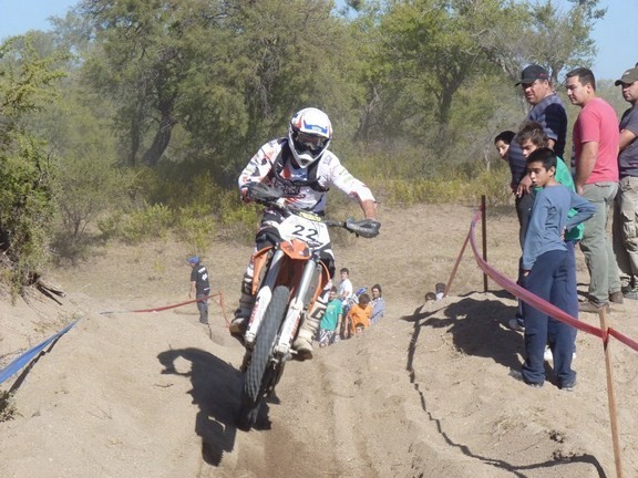 Sin embargo, tras la primer pasada extremadamente pareja y tras presentarse en sociedad con sus respectivas cartas, las arenas movedizas parecieron encargarse de llevarse a la mayoría y dejar ver que la victoria solo estaría dispuesta a tomar la mano del “Tin” de Embalse o de Tomás Vigilanti (Sicer Racing), quienes tras la segunda pasada y a un ritmo demoledor, seguían avanzando por debajo de los 14 minutos con el acelerador trabado a fondo y peralteando hasta las subidas, a pesar de los arrestos de un inquietante y hambriento Giordanengo, un sorpresivo Juan Pablo Moya (Achime) surgido del cross y llegado de la Seniors nacional y un revitalizado campeón Sánchez dispuesto a entregar cara su derrota ante el ímpetu juvenil de los punteros e Ignacio Ayuso (Beta) que no lució bien acompañado por su moto en esta ocasión, si hasta desde la Master Seniors aparecía el campeón argentino de MX, Augusto “chino” Freytes marcando también debajo de los 14 minutos y mas cerca de pelear a sus casi 40 años la general de la carrera, que una holgada victoria en su categoría.