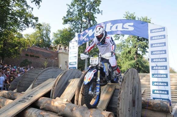 Esteban en plena acción en el prólogo del Red Bull Romaniacs 2013 junto a su Husaberg.