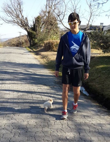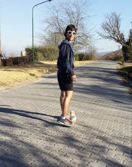 Una foto bien actual de Nico, caminando en su Salta natal junto a su perro.