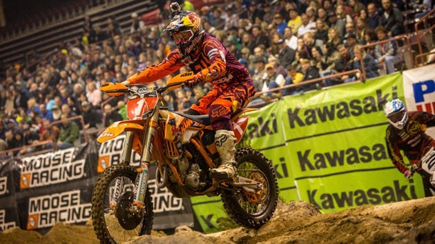 Taddy Blazusiak del Red Bull KTM Factory recogió su segunda victoria el sábado por la noche en Boise, Idaho, en la penúltima ronda del AMA EnduroCross. Blazusiak y Brown del Factory FMF / KTM empatan provisionalmente en puntos para la lucha del título final del campeonato.