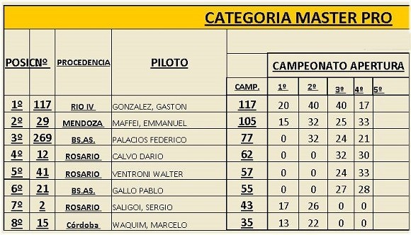 Sin el retorno aún de Nicolás Cavigliasso quién se recupera de una lesión, la promesa del espectáculo sobresale en el duelo Covassin-Altamirano y en el resto de las categorías donde la lucha también será al segundo, como por ejemplo en la clase PRO AM liderada por Matìas Lembo (120), Tomás Rodríguez (109) y Luciano Senestrari (100) o la Master A con Julio Senestrari (112) como máximo candidato, seguido por el pampeano Gustavo Rodríguez (108) y el cordobés Damián Saltiva con 101.
