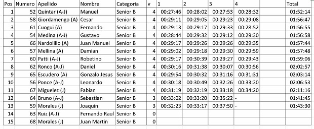 Un buen parque de Seniors en este inicio, coronó una buena convocatoria en cuanto a máquinas en esta apertura, que además contó con una importante adhesión de público en el trazado Tierra Brava, en esta apertura de CAE organizado por AJEM. En el resto de las categorías los ganadores fueron: Manuel Quintar (Senior B), Gastón Rodriguez (Júnior A), Lucas Godoy (Principiantes A), Omar Quintar (Principiantes B), Carlos Cuello (Júnior B), Francisco Riera (Master A), Marcelo Sambais (Master B), Hugo Enría (Master C) y Julieta Camarda (Damas), mientras que por el interprovincial salteño-jujeño se sumaban Joaquín Crisol (Infantiles A), Enrique Pfister (Infantiles B) y Gustavo Barbito (Infantiles C).