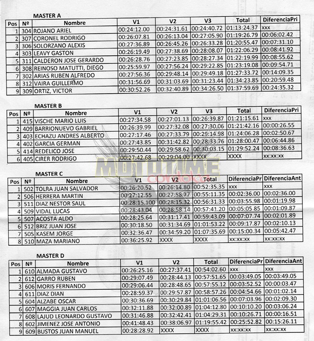 Tras las pruebas y administrativas, el Domingo arrancó soleado y con temperatura agradable, saliendo en primer término a pista todas las clases Master, donde se destacaron cada uno de los ganadores, Ariel Rojano (Master A) con más de 6 minutos de ventaja sobre su escolta y como si fuera poco, mas tarde largaría la final en Seniors B consiguiendo el segundo puesto allí, un verdadero caso de estudio el exhibido por el jinete de Monteros. En Master B, prevaleció el cordobés entrenado por Augusto Freytes, Mario Vische (Trapote-Los Chalchas) que viene en racha, no sin antes batirse a duelo con Gabriel Barrionuevo por el number one. En Master C, Juan Tolra (Husqvarna) le hizo honor a su pista y si pudo ser profeta en su tierra, mientras que en Master D, el ex campeón nacional Gustavo Almada (Beta) exhibió pericia y contundencia una vez más.