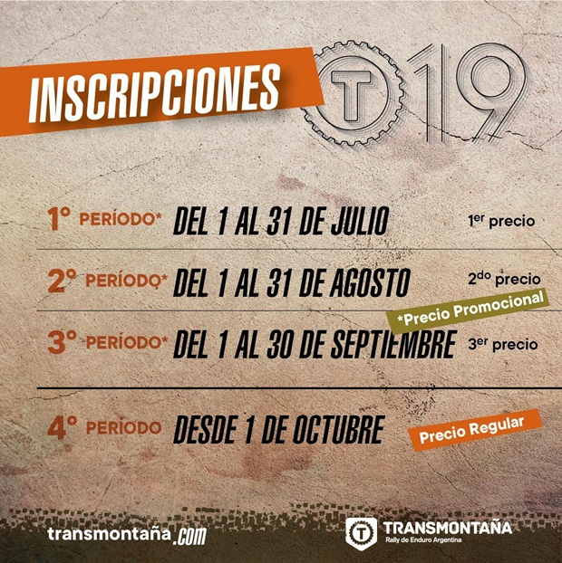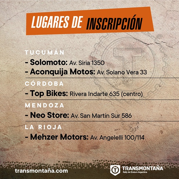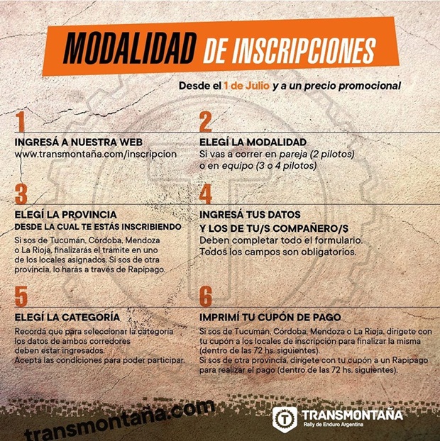 La 29º edición del Rally Transmontaña de enduro que oficialmente tuvo su apertura 2019 con el comienzo de inscripciones el 1º de Julio pasado, ya superó los 100 inscriptos en poco más de 15 días de actividad, más aún si tenemos en cuenta que solo se puede completar el trámite, en los días hábiles en los comercios habilitados para su recepción. Las 5 sedes en cuatro ciudades distintas de nuestro país, sumado a la posibilidad de hacerlo de manera digital a través de http://transmontaña.com/, le han dado ya vértigo a una edición que nuevamente promete ser histórica en Tucumán y a la vez el cierre de la Copa AMD Enduro Classics Series 2019.