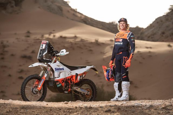 El australiano será debutante absoluto en este Dakar, aunque tuvo un año de entrenamiento (en pandemia) y un prometedor 11º puesto en el Andalucía Rally, bautismo de fuego para el ex campeón de enduro canguro.