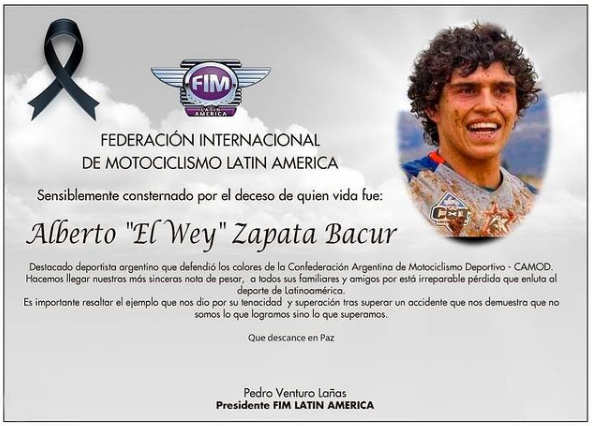 A través de su presidente el peruano Don Pedro Venturo Lañas, FIM LA recordó al Wey Zapata.
