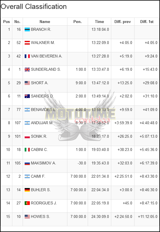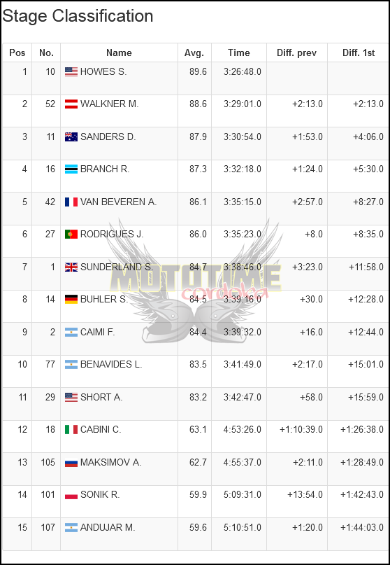 El Rally de Kasajistán se apresta para su final tras recorrer la 4º etapa con casi 310 Kms. de cronometrado, esta vez mayormente sobre la arena y las dunas. A pesar de no contar ya con opciones de victoria al ser penalizado fuertemente al destruir su cubierta trasera, el americano Skyler Howes (Husqvarna), dió nuevas muestras de su poderío al quedarse con su segunda victoria de etapa, mientras el liderazgo esta en manos de Ross Branch (Yamaha), que en la última etapa de mañana, deberá defender con más de 4 minutos sobre Matthias Walkner (KTM) y más de 9 minutos sobre su compañero Adrien Van Beveren (Yamaha). Hoy Franco Caimi (Hero) firmó una 9º ubicación y Luciano Benavides (Husqvarna) lo hizo un puesto por detrás del mendocino. Manuel Andújar (Yamaha) puso mucha estrategia hoy, para llegar puntero en Quads a la última etapa de mañana, con más de 26 minutos de ventaja sobre el polaco Rafa Sonik (Yamaha).