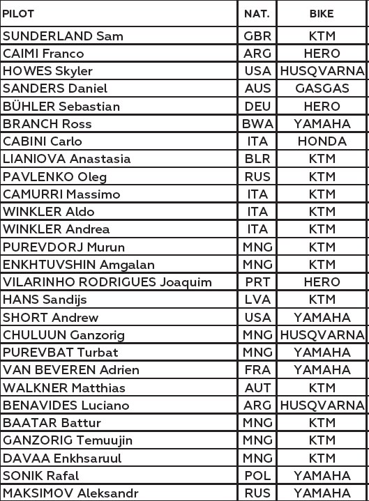 Se viene el Silk Way Rally desde Rusia hasta Mongolia, comprenderá 10 etapas convirtiéndose en una de las carreras mas largas del calendario, que tendrá la participación de Luciano Benavides (Husqvarna) y Franco Caimi (Hero) junto con la ausencia nuevamente del equipo Honda HRC, sumado a Sherco TVS que sí estuvo presente e Kasajistán. Los equipos KTM con Matthias Walkner, Yamaha Racing con Adrien Van Beveren, Ross Branch y Andrew Short, Husqvarna con Skyler Howes más Luciano, Hero con Franco más Joachim Rodríguez y el alemán Sebastián Buhler y el australiano Daniel Sanders que representará a Gas Gas, copleta el cuadro de favoritos en moto. El polaco Rafal Sonik y el ruso Alex Maksimov serán los mayores candidatos en Quads, esta vez sin el argentino Manuel Andújar que viene de ganar en Kasajistán.
