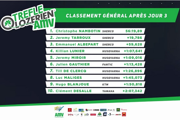 El inoxidable francés Christophe Nambotin (Sherco) regresó al triunfo en la clásica y popular Tréfle Lozérien, tras 9 años de haberla obtenido por única vez en 2012. La carrera que tuvo más de 500 participantes y tres días de actividad, fue cambiante pero a partir del segundo día, mostró la mejor versión del ex campeón del mundo. La cita tuvo también la participación del crosista Clement Desalle que terminó 10º en su primer carrera de enduro, de Antoine Meo que dentro del Top Ten, tuvo una fuerte caída en la última especial, teniendo que ir a cirugía de su hombro y del franco uruguayo Laurent Lazard, que preparándose para el Red Bull Romaniacs próximo, finalizó en la posición 285.