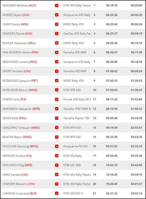 El Silk Way Rally finalizó hoy en Rusia, con una versión recortada de urgencia al no poder ingresar a Mongolia por el Covid, pasando de 10 exigentes etapas a solo 5, de las cuáles algunas debieron repetirse perdiendo el desafío de la navegación. Fue triunfo para Matthias Walkner (KTM), que como única espada del equipo austríaco ante la baja de Kevin Benavides y Sam Sunderland por lesiones, se las arregló más que bien para llevarse el triunfo. La gran nota la dió Franco Caimi (Hero), que consiguió el primer podio mundialista en la historia de la marca india, no sin antes apretar con fuerza en la última etapa a Skyler Howes (Husqvarna), descontando 43″ de los 49″ que el americano tenía a su favor antes del inicio del último stage, en la pelea por el segundo escalón de la carrera. Luciano Benavides (Husqvarna) que reconoció no estar del todo cómodo en este rally, solo pudo firmar un octavo puesto final por delante de Short y Rodríguez entre otros.