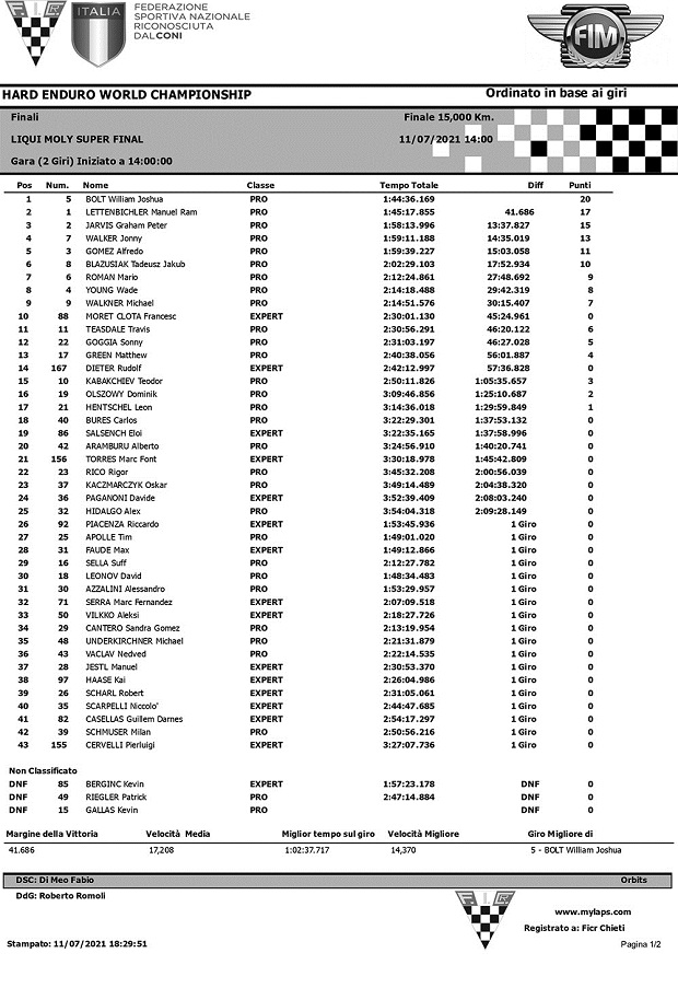 El británico Billy Bolt (Husqvarna) se quedó con la primer fecha del mundial FIM de Hard Enduro en Abestone, Italia, confirmando su gran presente y tras su exitoso paso por el EnduroGP. Bolt superó por 44″ a Manny Lettenbichler (KTM), tras superarse varias veces, en el trazado de 15 kms. al que tuvieron que rodear en dos ocasiones. El inoxidable Graham Jarvis (Husqvarna) completó el podio final, a poco más de 13 minutos de la punta, pero por delante de Jonny Walker (Beta) y su compañero Alfredo Gómez (Husqvarna), en el inicio del nuevo certamen que tuviera fallido debut en la Lagares portuguesa, a causa de restricciones por el Covid.