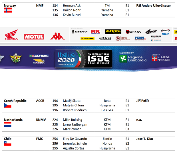 Los ISDE Italia 2021 cuenta las horas para el arraque de la edición postergada del 2020, con epicentro en Rivanazzano Terme y sin presencia argentina, dado que el equipo sanjuanino inscripto, no pudo conseguir los traslados aéreos seguros para el regreso al país. Serán 21 seleccionados Trophy quiénes pugnarán por el premio mayor, solamente con dos formaciones sudamericanas representando a Brasil y Venezuela, 14 equipos Júniors de los cuáles solo Chile figura entre los latinos y 8 seleccionados de Mujeres que irán por el trofeo entre las féminas.