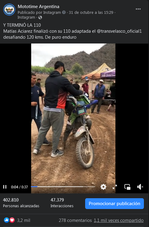 Mis amigos me impulsaron y yo fe me tenía, fue en el circuito Ciénaga de Famatina, recuerdo que la organización no me creía capaz de largar con mi moto, así que les mostré unos videos entrenando, ya que había empezado hace tiempo a entrenar y prepararme, haciendo el “enduro de la muerte” del Transvelasco con mi 110cc. por ejemplo, ya que descubrí que esta es mi pasión y es lo que quiero hacer y mi moto jamás me dejó a pie.