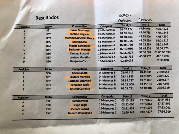 Las formativas del Provincial, tuvieron su espacio preferencial en el mediodía cordobés, donde Tomás Contreras (Yamaha) volvió a dominar la clase mayor A, acariciando el título provincial 2021 casi en la despedida de la categoría. En Manores B. el triunfo fue a manos del líder del torneo Kevin Dinoto (KTM), mientras que entre los mas chiquilines del cordobés, Ramiro Perez fue el ganador entre los Menores C.