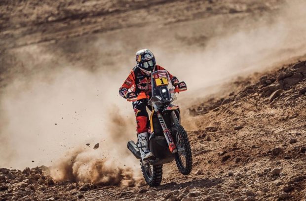 Hoy se esperaba un gran día para Kevin Benavides en la etapa 7 del Dakar, no solo a la espera de que continuára su remontada, sino por su cumpleaños 33 que sabemos, le gusta festejarlo arriba de la moto. Fueron 402 kilómetros de la séptima etapa cronometrada entre Riyadh y Al Dawadimi, que Kevin la peleó mano a mano con el chileno Nacho Cornejo, ganada por el trasandino por 44 segundos, pero que a Kevin le posibilitó subir al tercer puesto en la general, a solo 5’23” del nuevo líder Adrien Van Beveren. Luciano Benavides no quiso ser menos, firmando un espectacular cuarto puesto en la etapa, que lo lleva al top 15 de la general tras una primer semana algo desabrida para el. Diego Llanos, se sumó a este “feliz domingo” argentino, al clavar el puesto 19 en la etapa, por primera vez dentro del selecto grupo de los 20 más rápidos de la carrera mas complicada del planeta, en un debut hasta aquí casi inmejorable.