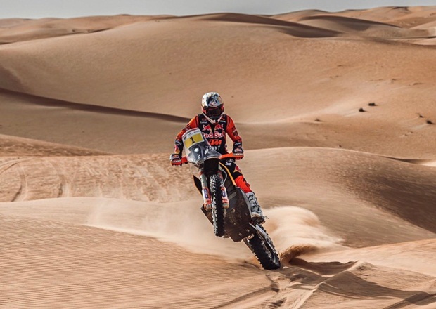 La 4º etapa del Abu Dhabi Rally dejó una de cal y una de arena bien marcada para los argentinos, por un lado Luciano Benavides (Husqvarna) se sacó la mufa por completo, al lograr su primer triunfo de etapa en un mundial, algo que tuvo al alcance de la mano varias veces, pero que no se le había podido dar a “Faster”, nutriendo de confianza al salteño que vaya si la necesitaba. Por otro, Kevin Benavides (KTM), que tercero en la general luchaba por este rally, nuevamente debió penar con problemas mecánicos, esta vez en su caja de cambios, que lo obligó a transitar en segundo cambio gran parte del rally, resignando más de 50 minutos en la etapa y sus chances de victoria. Franco Caimi (Hero), continuó su prolija tarea de regreso, firmando 8º la etapa y subiendo al 7º en la general, que será decidida mañana entre el líder Sam Sunderland (GasGas) y sus más inmediatos perseguidores, el chileno Pablo Quintanilla (Honda), el australiano Toby Price (KTM) y el americano Ricky Brabec (Honda), los cuatro mejores perfilados.