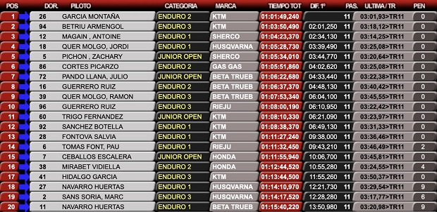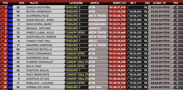 Josep García sigue demostrando una superioridad manifiesta, mientras que el regreso tras la lesión de Jaume Betriu, se transformó en una gran noticia al hacerlo en excelentes condiciones, para quedarse con el puesto de escolta y el triunfo en la E3. El francés Antoine Magaine completó el podio en el primer día, mientras que Cristóbal Guerrero metió sorpresa en el segundo día, para quedarse con el puesto 3.