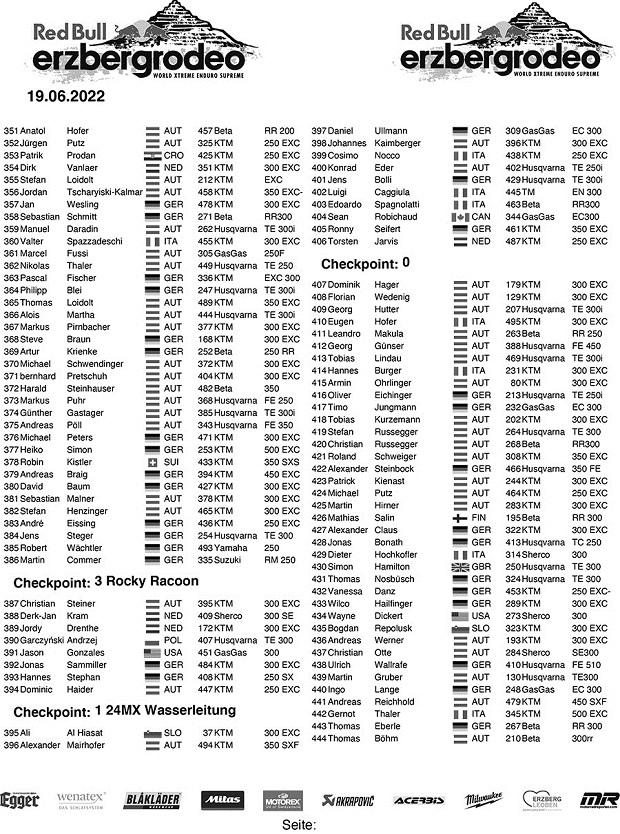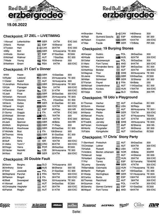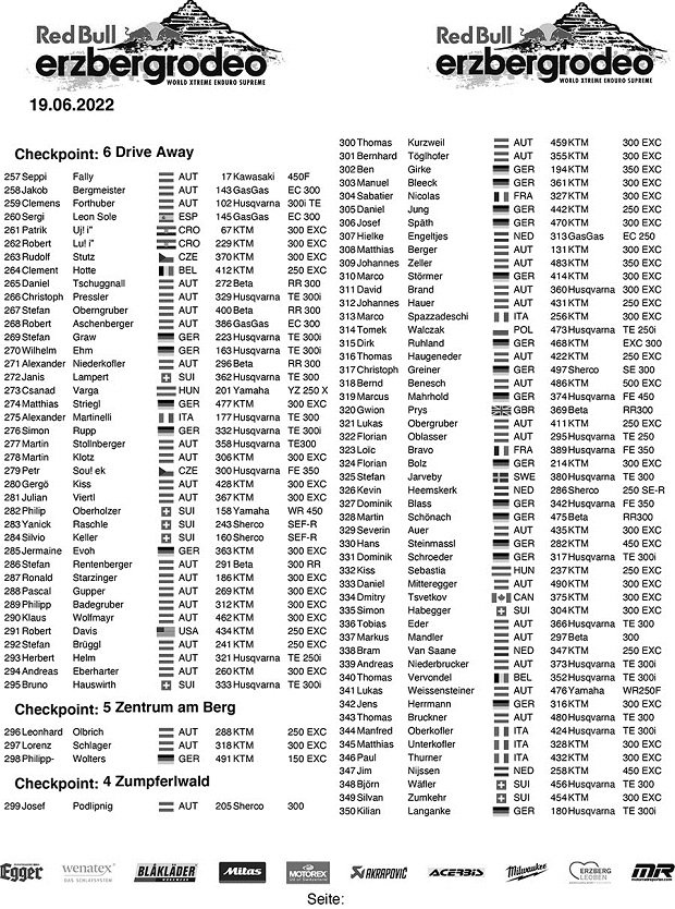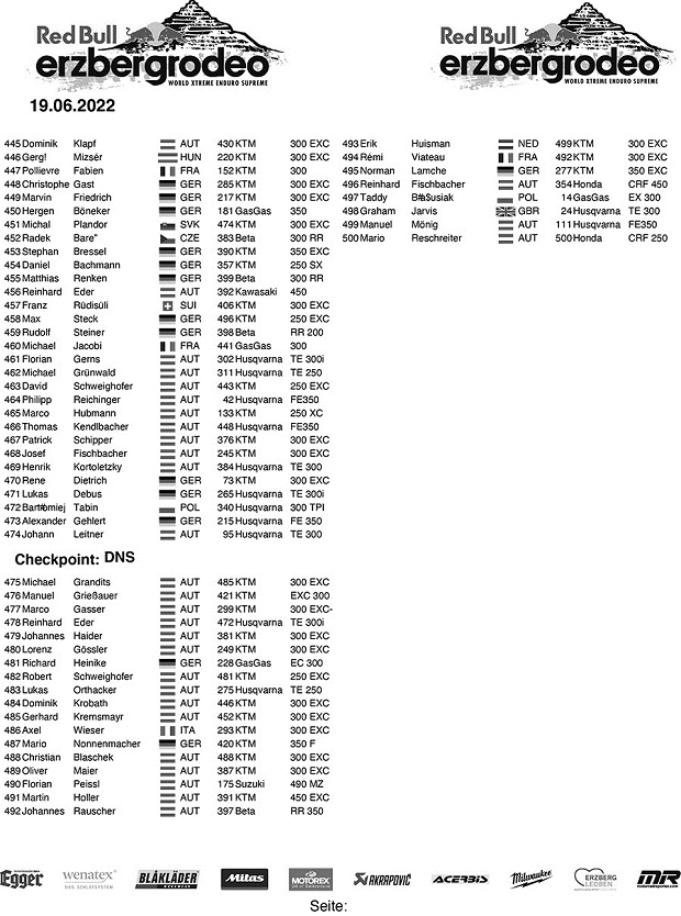 El regreso post pandemia de la Erzberg Rodeo 2022, ha sido caratulada por muchos como la edición mas dura de la historia, con nuevas secciones que elevaron la vara técnica y la duración de la carrera en una hora más de lo previsto. El alemán Manny Lettenbichler (KTM), se llevó su primer triunfo en la clásica austríaca, con Mario Román (Sherco) y el canadiense Trystan Hart (KTM) por detrás. Una gran organización no estuvo exenta de un error de marcación en el comienzo, que demoró en 10 minutos la largada de la segunda línea de pilotos, a la vez que Graham Jarvis (Husqvarna), sufría un inconveniente mecánico, que lo dejó último entre los 500 finalistas, remontando pero sin poder llegar a completar el final.