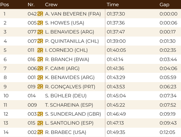 Realmente en este retorno del rally raid al calendario, tanto el equipo Husqvarna como sus pilotos Howes y Benavides, no han dejado espacio para resaltar la labor de otros pilotos y equipos, ya que han brillado en todos los aspectos para llevarse el 1-2, así como en otros momentos han penado con errores y desencuentros. Ricky Brabec (Honda) se lleva algún triunfo de etapa y el tercer puesto final para estar en el podio al menos, al igual que Ross Branch (Hero) logró mostrar alguna carta al comando de la moto de origen indio, que cada vez parece rendir mejor y más cerca de las potentes marcas mundialistas.
