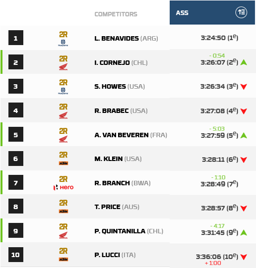 Reapareció el doble 7 bravo en el Abu Dhabi Desert Challenge, con un triunfazo de etapa para Luciano Benavides (Husqvarna Racing), que tomó rápidamente el control de la etapa de 257 Kms. de especial, para abrir una brecha de casi un minuto sobre Ignacio Cornejo (Honda) y de casi dos minutos sobre su compañero Skyler Howes (Husqvarna Racing), para treparse al tercer puesto de la general, detrás de las Hondas de Adrien Van Beveren y Pablo Quintanilla que hoy abrieron pista y cedieron tiempo. Con etapa maratón en curso, la cuál no les permite asistencia de sus equipos, el cuidado del medio mecánico será fundamental camino a la etapa de mañana, que será de 266 Kms. de especial y un cortísimo enlace de 60 Kms.