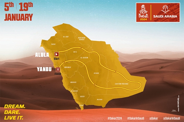Aunque falta muchísimo tiempo aún, ya comienzan a llegar las primeras informaciones sobre el próximo Rally Dakar 2024 en Arabia Saudíta. Lo más importante que ASO comunicó, es que la carrera será del 5 al 19 de Enero, con prólogo y 12 etapas de competencia, más de 5000 kms. de especiales cronometradas, largará en Al Ula y terminará en Yanbu a orillas del Mar Rojo, pasará nuevamente con peso por el desierto del Empty Quarter y para el último, la gran novedad, que será introducir una nueva “Crono de 48 horas”, algo así como una etapa maratón, pero que en este caso, dividirá el bivouac en ocho partes, sin comunicación entre los compañeros que estén en otro bivouac, menos con el equipo, lo que intentará generar incertidumbre en cuanto a las clasificaciones, hasta terminar ambas etapas, buscando evitar especulaciones y estrategias. Por último, seguirán las bonificaciones por apertura de camino y nace Misión 1000, un programa para que los fabricantes puedan probar innovaciones en sus tecnologías, en los primeros 100 kms. de cada etapa y con el Dakar como banco de pruebas.