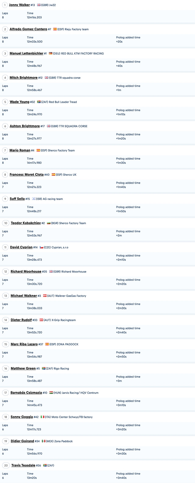 Más de 600 pilotos engrillados en esta edición, donde solo los 35 mejores tras las clasificatorias, tomaron partida del prólogo, en clases bronce, plata y oro, con 10 minutos más una vuelta, a un recorrido siempre intenso, pero mas fluído que en otras oportunidades. A partir de aquí, serán cuatro días de off road en los Cárpatos rumanos, con etapas de más de 100 kilómetros diarios de recorrido, con importantes tramos de hard enduro. Los argentinos participantes, se ubicaron en el prólogo de la siguiente manera, Gino Cuoghi 73º, Martín Muller 130º, Roberto Pont 147º, Fernando Cuoghi 208º y Jerónimo Manzur sin poder concluir al romper un amortiguador, entre casi 300 pilotos en esta clase.