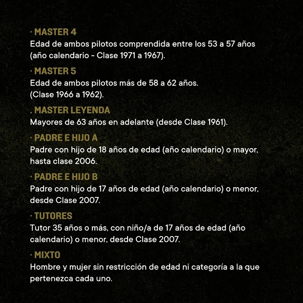 Con respecto a 2023, hay modificaciones en categorías Tutores VER REGLAMENTO manteniendo el resto de las clases que ya estaban pautadas.