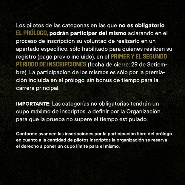 Ya se puede decir que se largó la Copa Transmontaña Zavadivker 2024, al abrirse las inscripciones en el día de hoy, con la primer pareja de Benjamín Recaman y Facundo Rodríguez de Salta, realizando su registro a las 00:01 horas!… con ya casi 100 pilotos ya registrados, cuando aún no se ha cumplido medio día de la apertura. Habrá que especial prestar atención este año a los períodos de registro, no solo para aprovechar los valores promocionales, sino también porque en esta edición, podrán participar del prólogo, pilotos de categorías no obligadas a hacerlo, pero para ello, deberán inscribirse antes del 29 de Setiembre, con la posibilidad de que si se suman muchos, se ponga un límite antes de esa fecha. Arrancó formalmente el evento, a nuestro estilo te vamos informando, acerca de todo lo importante que hay que tener en cuenta, para vivir la experiencia Transmontaña a pleno.