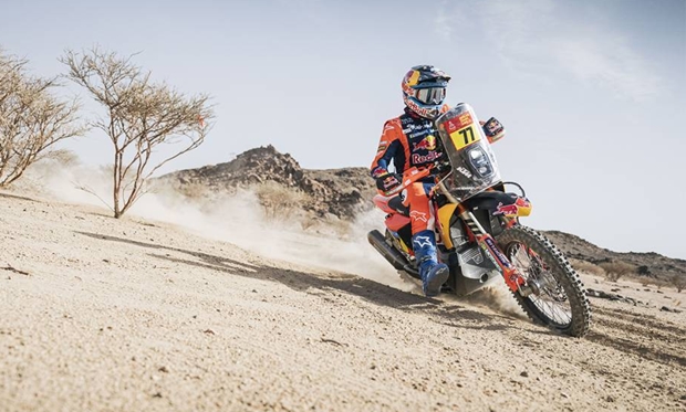 La primer etapa del Rally Dakar se corrió hoy, con un “rulo” con partida y llegada en Bisha de poco más de 400 kilómetros de cronometrado, donde volvió a brillar el australiano Daniel Sanders (KTM), que se quedó con el mejor registro en lucha directa con Ricky Brabec (Honda) y Ross Branch (Hero), sus escoltas finales de la etapa. Luciano Benavides (KTM), cumplió un buen parcial, firmando sexto a 10’02” de su compañero de equipo, mientras Kevin Benavides (KTM) fue 17º, cumpliendo su misión de ir paso a paso por etapa, midiendo para que está este rally en sus condiciones físicas limitadas. Para la etapa 2 de mañana, se invertirá el orden de largada de acuerdo a la clasificación de hoy, siendo la primer parte de la etapa de 48 horas sin asistencia, por lo que no hubo especulaciones en pista. El neuquino Santiago Rostán (KTM Xraids), arribó al final en principio en posición 58º, todos los pilotos con visibles marcas en sus brazos de arañazos de espinas, al pasar entre arbustos a alta velocidad. Se aguardan aún novedades en cuanto a Benjamín Pascual (Segway) con su moto eléctrica. Entre las malas noticias, se produjo el abandono del alemán Sebastián Buhler (Hero), tras caer en el Km.68 con golpes en su hombro, quedando reducido a tres pilotos el equipo indio.