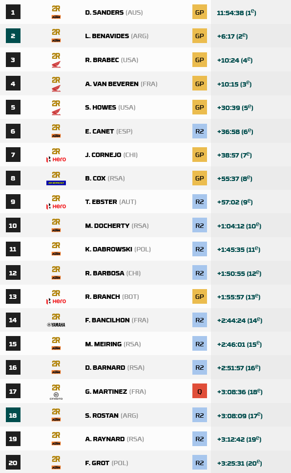 RESULTADOS ETAPA 4 MOTOS PROVISIONALES (TOP 20)