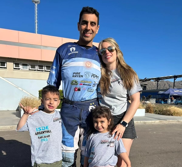 Sí, mis viejos estuvieron presentes en todas, bueno gracias a ellos logramos todo lo que logramos, todo lo que pudimos correr fue gracias a ellos, dejaron sus proyectos por vernos correr, así que súper agradecidos por la oportunidad que nos dieron. Más de grande, me tocó mi propia familia que haga lo mismo, con mi esposa y mis hijos, así que siempre agradecido a la familia que me acompañe. Mis hijos me gustaría que hagan el deporte que hagan, lo elijan con pasión, soy un apasionado de la moto y de los deportes en general, siempre los hice al máximo, me gustaría inculcarles eso, más allá de lo que elijan, puedan dar su 110%, no sé si será la moto, el fútbol u otra cosa, pero nosotros los vamos a apoyar.
