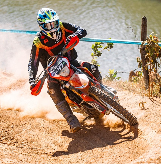 La verdad espectacular todo, me acompañó un amigo que me hizo de mecánico, manejamos 1000 km de ahí de vuelta, la organización divina y la verdad que es un circo bastante grande, los especiales durísimo difíciles y los enlaces más duros y más difíciles que lo especiales, girándolo rápido a muy buen ritmo. En los enlaces llegamos con 20 segundos de tiempo a buen ritmo, la mayoría penalizaba, por lo que estuvo muy picante, con 6 horitas y pico arriba de la moto. Con la moto me sentí bien, el sábado terminé muy cansado y el domingo tuve que abandonar en la segunda vuelta la prueba, porque se me rompieron las manos, no podía mas con el manillar, pero bueno los puntos ya me daban para coronar. En el Super Especial del Viernes me sentí rapidísimo, pero me golpee y no quise arriesgar de más. Los chicos de Beta Brasil impecables, la verdad muy bien, me trataron muy bien, aunque no me sentía muy muy cómodo, no sé si será por el cambio de moto al 2T, ya que hacía mucho que no usaba, pero la disfruté.