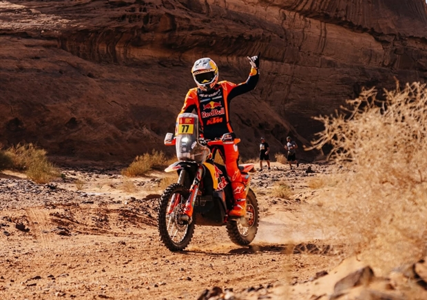 La sexta etapa del Dakar, ha sido la mas larga del rally hasta aquí con 920 kms. de recorrido, aunque solo un tercio de ellos de forma cronometrada (331 kms.) con neutralización intermedia. El piloto del día ha sido el australiano Daniel Sanders (Red Bull KTM), tanto por el infernal ritmo que impuso, como por un error de exceso de velocidad en la neutralización, que le costó 6 minutos de penalización y la victoria de etapa a manos de Ricky Brabec (Monster Honda), quedando la general con el día de descanso mañana, liderada por Sanders con Brabec a solo 45 segundos. El salteño Luciano Benavides (Red Bull KTM), debió abrir camino tras su gran triunfo de ayer, siendo alcanzado por Sanders en el km. 162, pero extrañamente tras compartir bonificaciones abriendo juntos, el australiano se ha escapado más allá de los 15 segundos permitidos, privando al argentino de hacerse de ese tiempo bonus en función de equipo, cuando la carrera todavía está verde y no sería tiempo de “cortarse solo”, igual habrá que esperar para saber si esta situación fue obligada por algo o tendrá alguna reprimenda puertas adentro de KTM, firmando un sexto puesto en la especial y manteniendo el podio para la segunda parte. El neuquino Santiago Rostan (KTM XRaids) continúa firme siendo 37º en la etapa, similar a lo que acontece con el cordobés Leonardo Cola (KTM Joyride), aquel que le “salvara las papas” alguna vez a Kevin Benavides, en posición 53º del especial. Benjamín Pascual (Segway) en tanto, sumó otra victoria de tapa y continúa como líder en motos eléctricas.