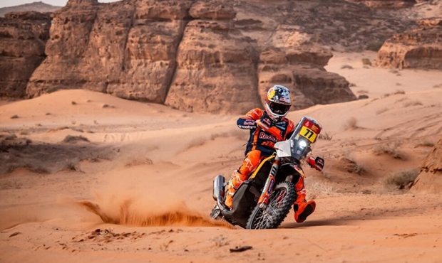 Otra etapa para la historia grande de pilotos argentinos en el Rally Dakar, ha sido el extenso 7° parcial de casi 900 kms. de recorrido (459 kms. cronometrados), porque Luciano Benavides (Red Bull KTM) logró su séptimo triunfo de etapa y la segunda de esta edición, nuevamente con mucha autoridad y una muy buena ventaja, que lo sigue teniendo tercero en la general, pero ahora a 4’40” del líder Daniel Sanders (Red Bull KTM) y a 15 segundos del escolta Ricky Brabec (Monster Honda). Queda grabada en nuestras retinas también, ya que Kevin Benavides (Taurus Remax), logró hoy su primer triunfo de etapa en cuatro ruedas al imponerse en Challenger. La gestión de Faster de la etapa, ha sido nuevamente impecable como en días pasados al ganar la quinta, descontando muy buen tiempo con respecto a la punta. Santiago Rostan (KTM XRaids) sigue firme hoy ocupando el escalón 38° y Leonardo Cola (KTM Joyride) de igual manera en posición 52°.