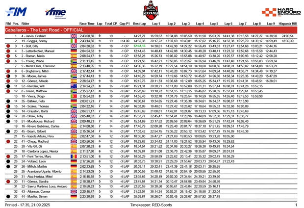 Lo que debía concluir como una gran fiesta, no lo fue tanto en la Hixpania Hard Enduro 2025, cuarta fecha del mundial FIM, que terminó en gran polémica, tras una inédita conclusión con los pilotos élite, negándose a realizar parte del trazado final y generando una enorme confusión en la organización y sobre todo en los numerosos asistentes y medios presentes. La carrera oficialmente fue ganada por Graham Jarvis (Husqvarna), único piloto junto al italiano Sonny Goggia (KTM), en completar la totalidad del recorrido. Las versiones son contrapuestas y lo cierto es, que los pilotos élite acordaron entre ellos, no realizar una última trepada, en desacuerdo a reclamos hechos a la organización al respecto del trazado, llegando al final por otro sector y evitando la marcación original. Jarvis al llegar al sector donde en teoría “acordaron” no realizar los jinetes, tomó la trepada previamente practicada el día Viernes, llegando al final junto a Goggia mas tarde y haciéndose del triunfo.