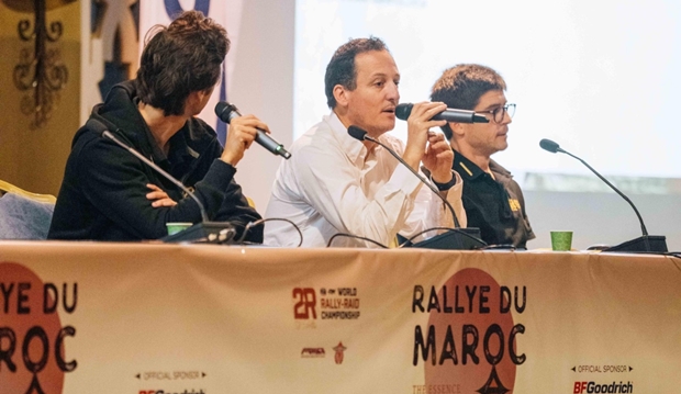 Pablo Eli presentando DR40 2026 en el Rally de Marruecos.